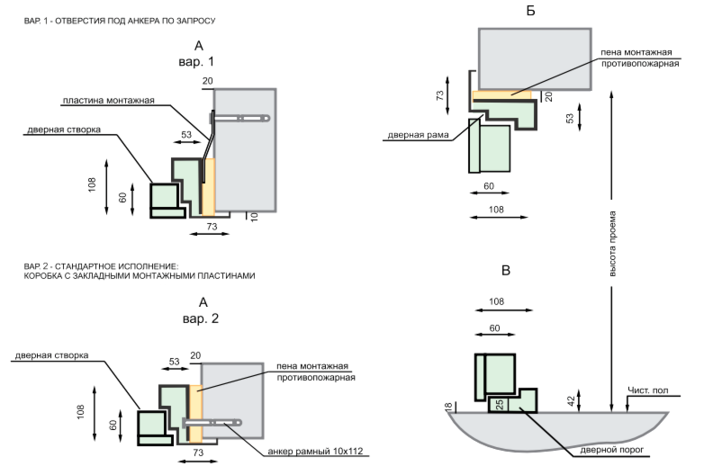 Схемы монтажа противопожарной двери